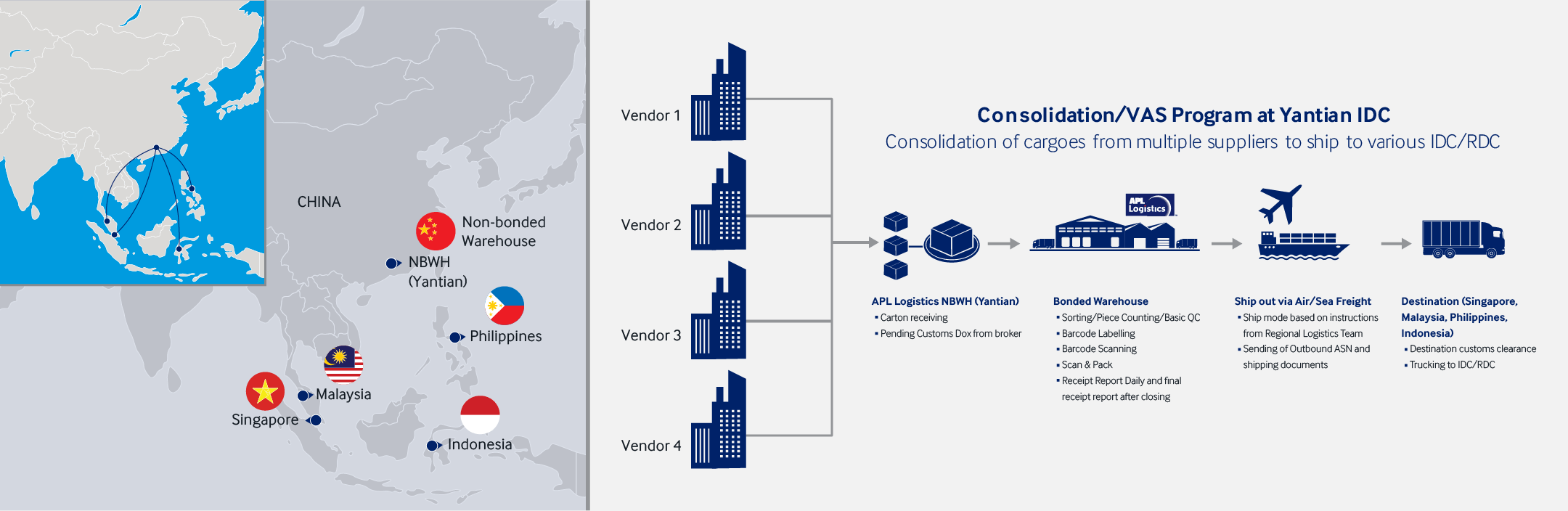 APL Logistics deployed Asia distribution centers in South Asia and Singapore for this online fashion retailer.