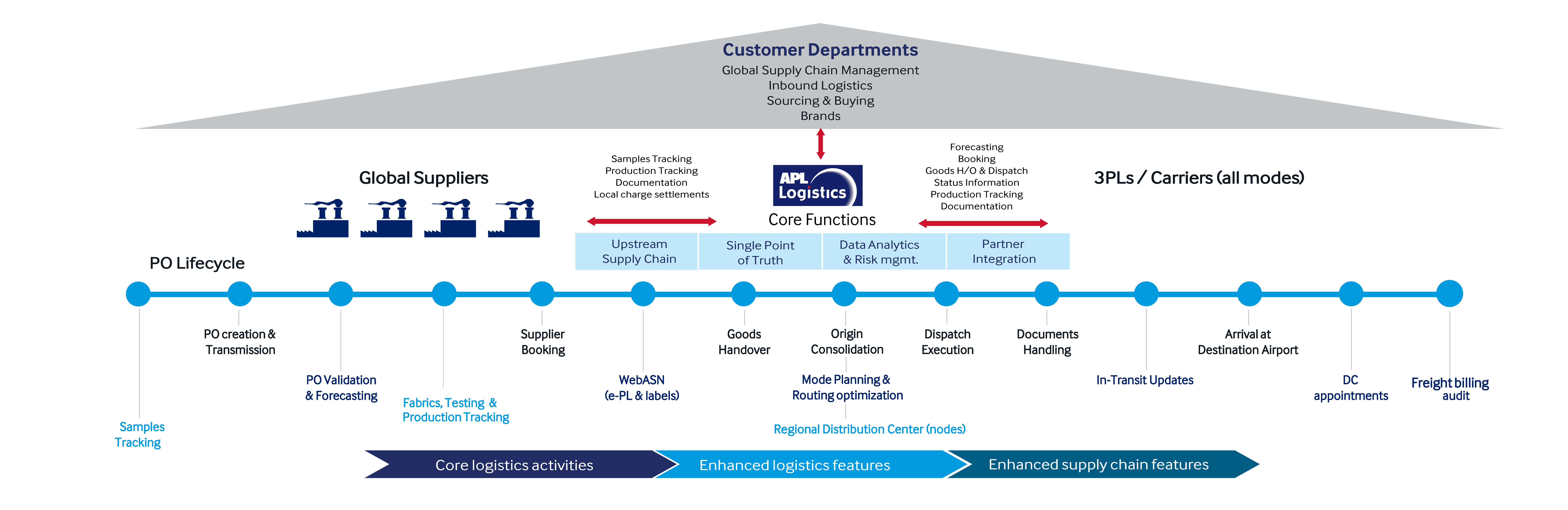 - APL Logistics coordinates 1st-mile trucking transportation & manages export customs on behalf of the customer